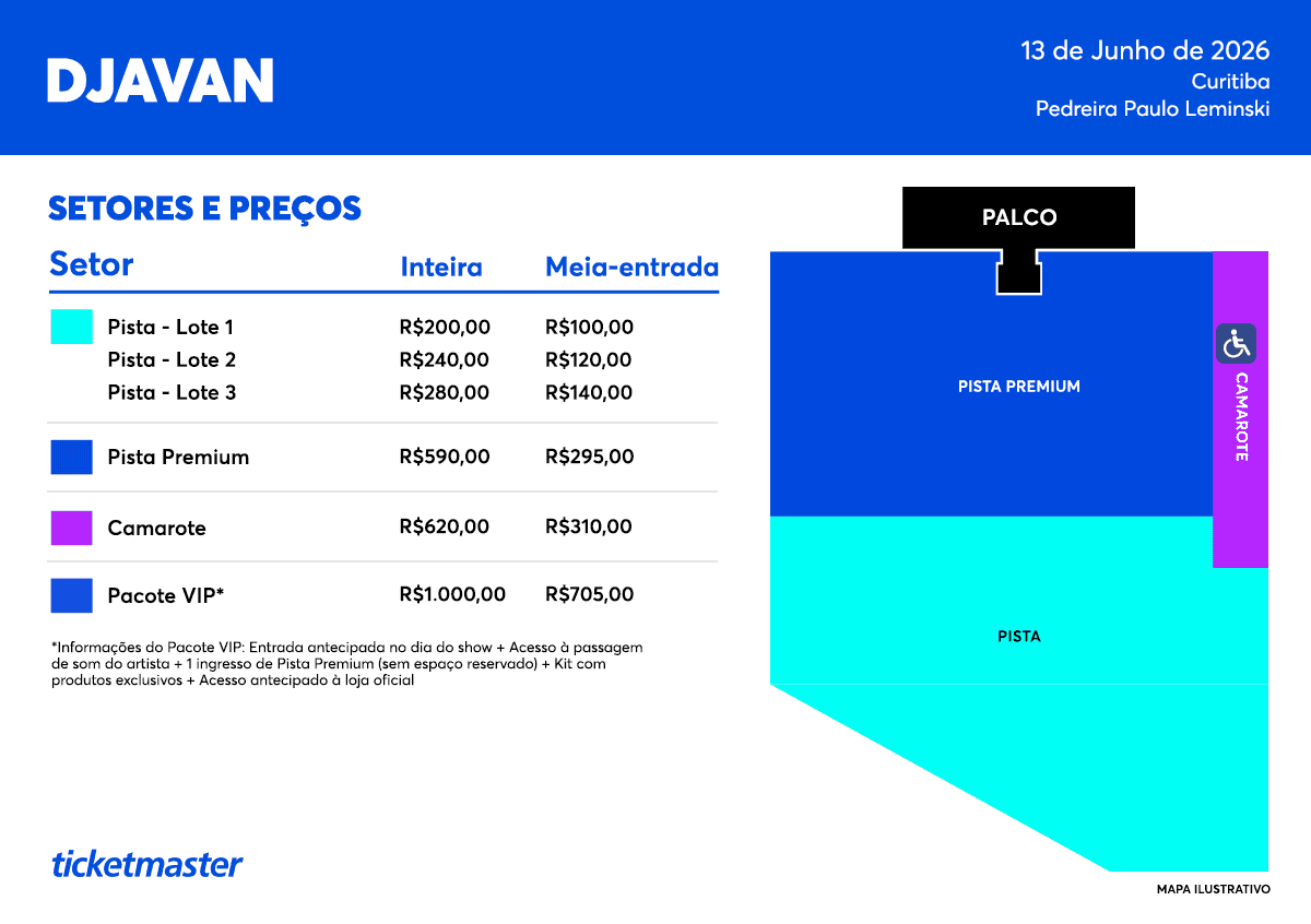 Quanto: os ingressos variam de R$ 100 a R$ 1.000,00 de acordo com o setor e modalidade escolhidos