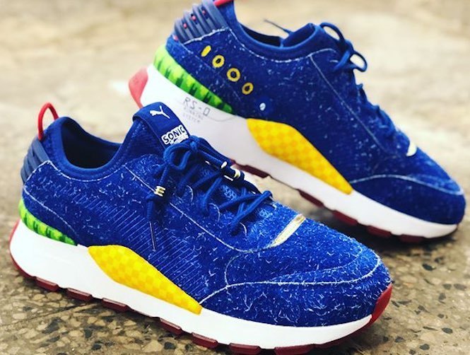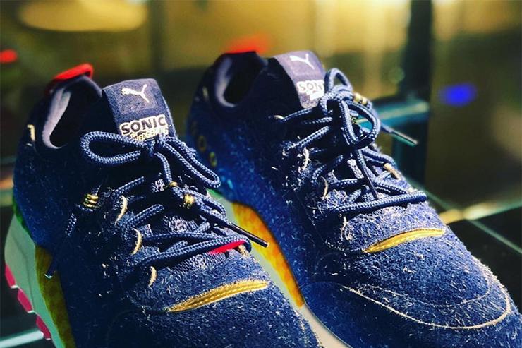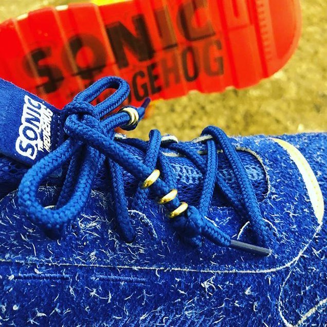 Com uma mistura do retrô com novo, o tênis (obviamente) foi feito para corrida, mas também pode ser usado como sportswear. A aparência é inspirada no personagem, com a composição de camurça texturizada em tons de azul, afim de imitar o pêlo de Sonic. Além disso, há a combinação da meia sola branca e sola vermelha, o qual faz referência aos tênis do personagem. As estradas por onde Sonic corre também serviram de inspiração, e apareceram nas impressões decorativas verdes e amarelas. Para fechar com chave de ouro, as argolas douradas tão desejadas por quem joga, também aparecem no tênis e no cadarço.