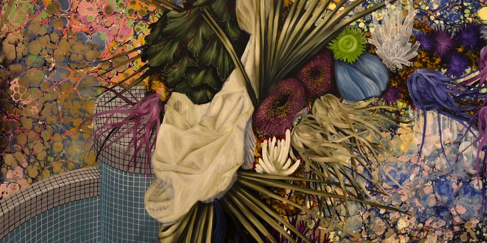 Além da instalação central, o público poderá ver trabalhos que exploram diferentes técnicas: grandes telas com cores saturadas que remetem a cortinas de teatro, flores e tecidos estampados; fotografias mescladas com pinturas e bordados em larga escala, criando uma natureza-morta contemporânea marcada pelo contraste entre o nobre e o residual.