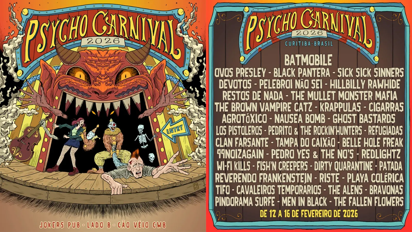 Entre os dias 12 a 16 de fevereiro, Curitiba recebe a 25ª edição do Psycho Carnival, um dos festivais de psychobilly mais conhecidos e respeitados do mundo. O evento ocorre no Jokers Pub, e os ingressos já estão à venda no site Meaple, a partir de R$ 360.
