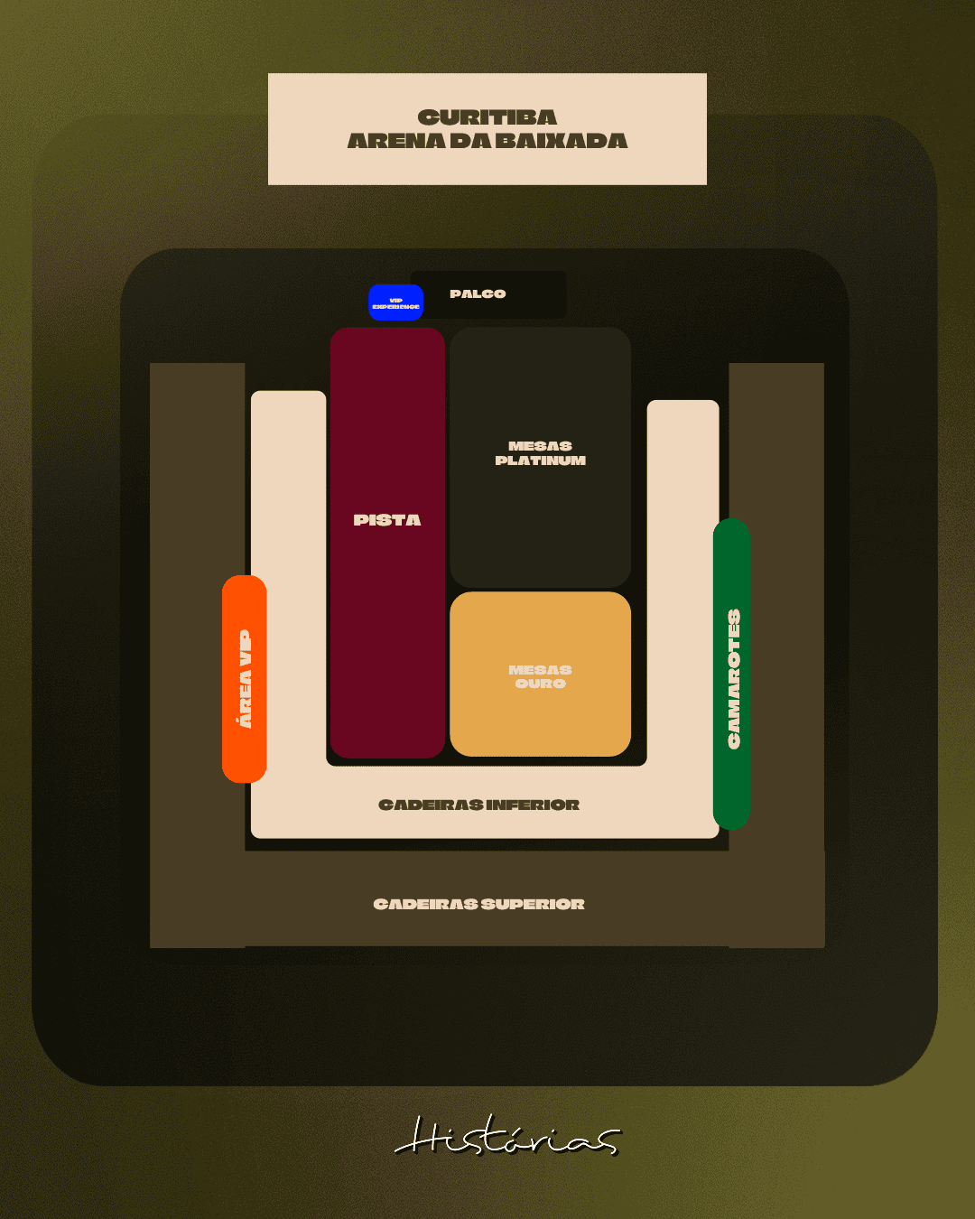 Posicionada entre as cadeiras inferior e superior, a Área VIP garante uma visão estratégica do palco com mais conforto do que os setores tradicionais. Uma opção para quem busca boa localização sem estar na pista.