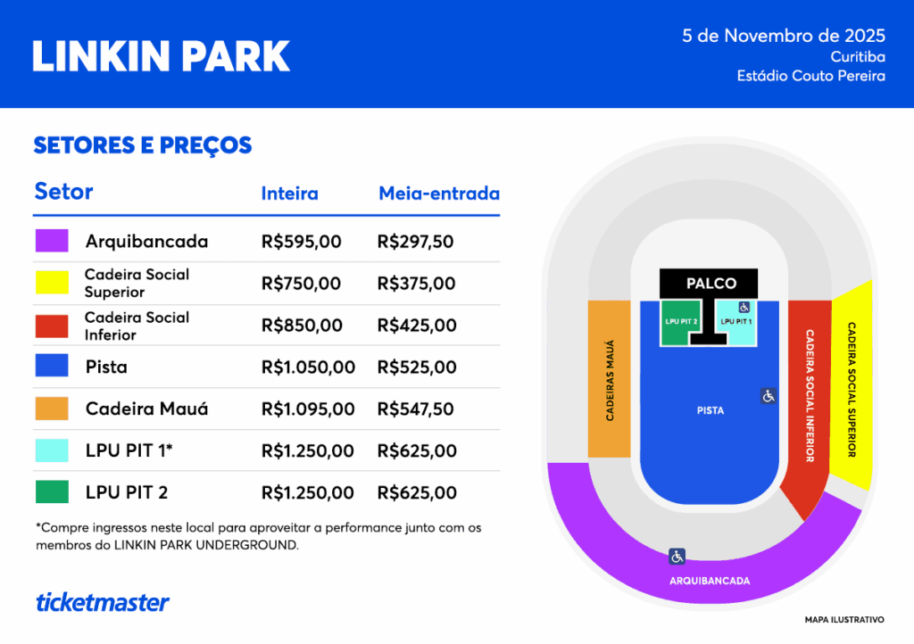 Curitiba dá o pontapé inicial da etapa brasileira da turnê mundial “From Zero World Tour”, do Linkin Park. O show acontece nesta quarta-feira (05), no Estádio Couto Pereira, e marca o início da passagem da banda pelo país, que ainda inclui apresentações em São Paulo e Brasília. Confira o guia prático para o show: