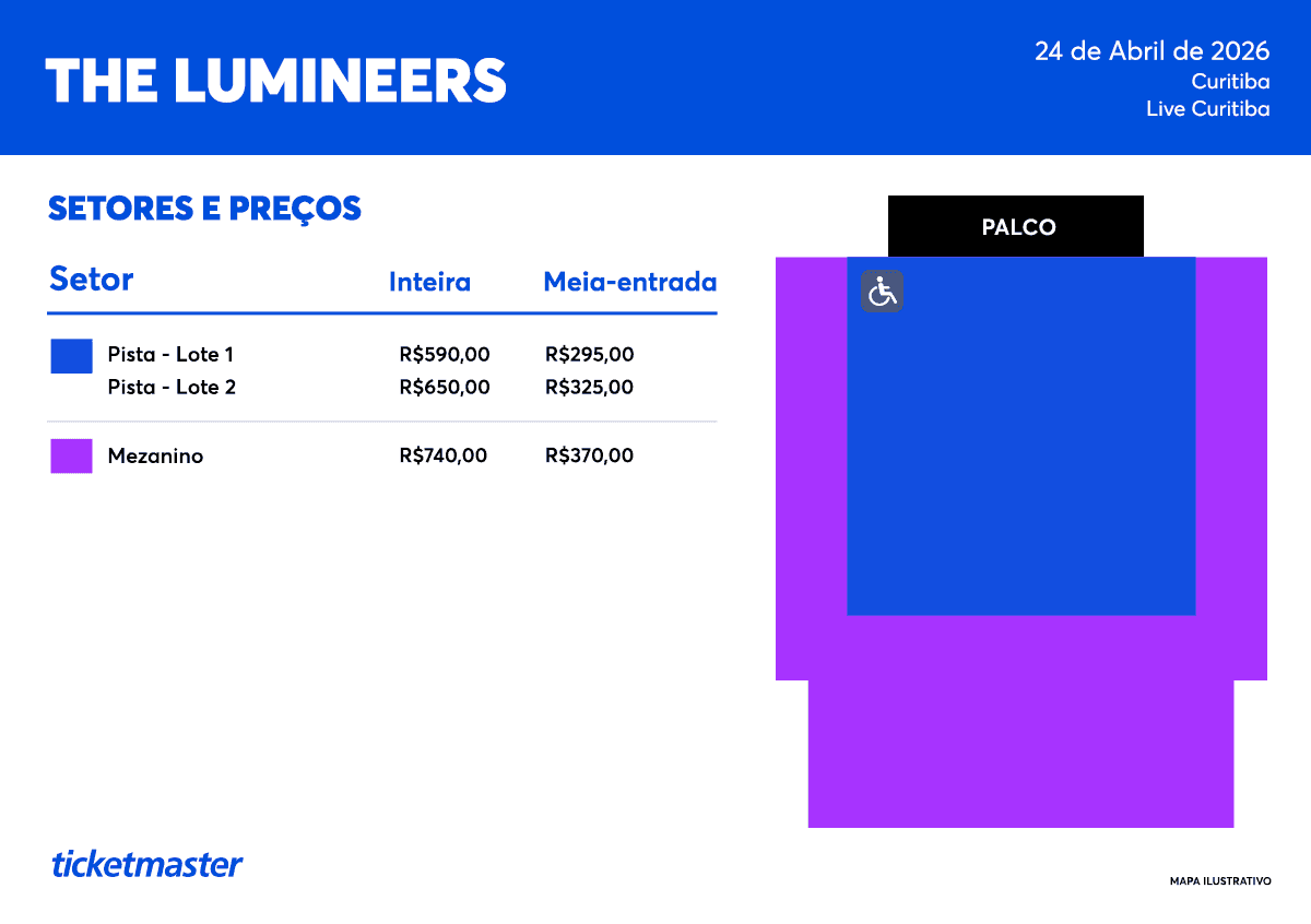 E mais um show chegando em Curitiba! The Lumineers anunciam um show em Curitiba, no dia 24 de abril, na Live. A apresentação faz parte da turnê que celebra o recente álbum do grupo. As vendas de ingressos para o público em geral estará disponível a partir desta sexta-feira, 30 de janeiro, começando às 10h online na Ticketmaster e às 11h na bilheteria oficial, na própria Live.